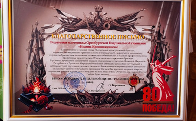 Вчера, 26 июня в штабе партии "Единая Россия" вручались благодарственные письма от ВРИО командира 72 ОМСБр майора О. Боргоякова волонтерским организациям и оренбуржцам, активно помогающим военнослужащим на СВО. На торжественное мероприятие были приглашены и гимназисты.