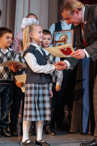 Под громкие аплодисменты председатель попечительского совета гимназии и вице-губернатор Оренбургской области Дмитрий Владимирович Кулагин торжественно вручил первоклассникам свидетельство гимназистов.