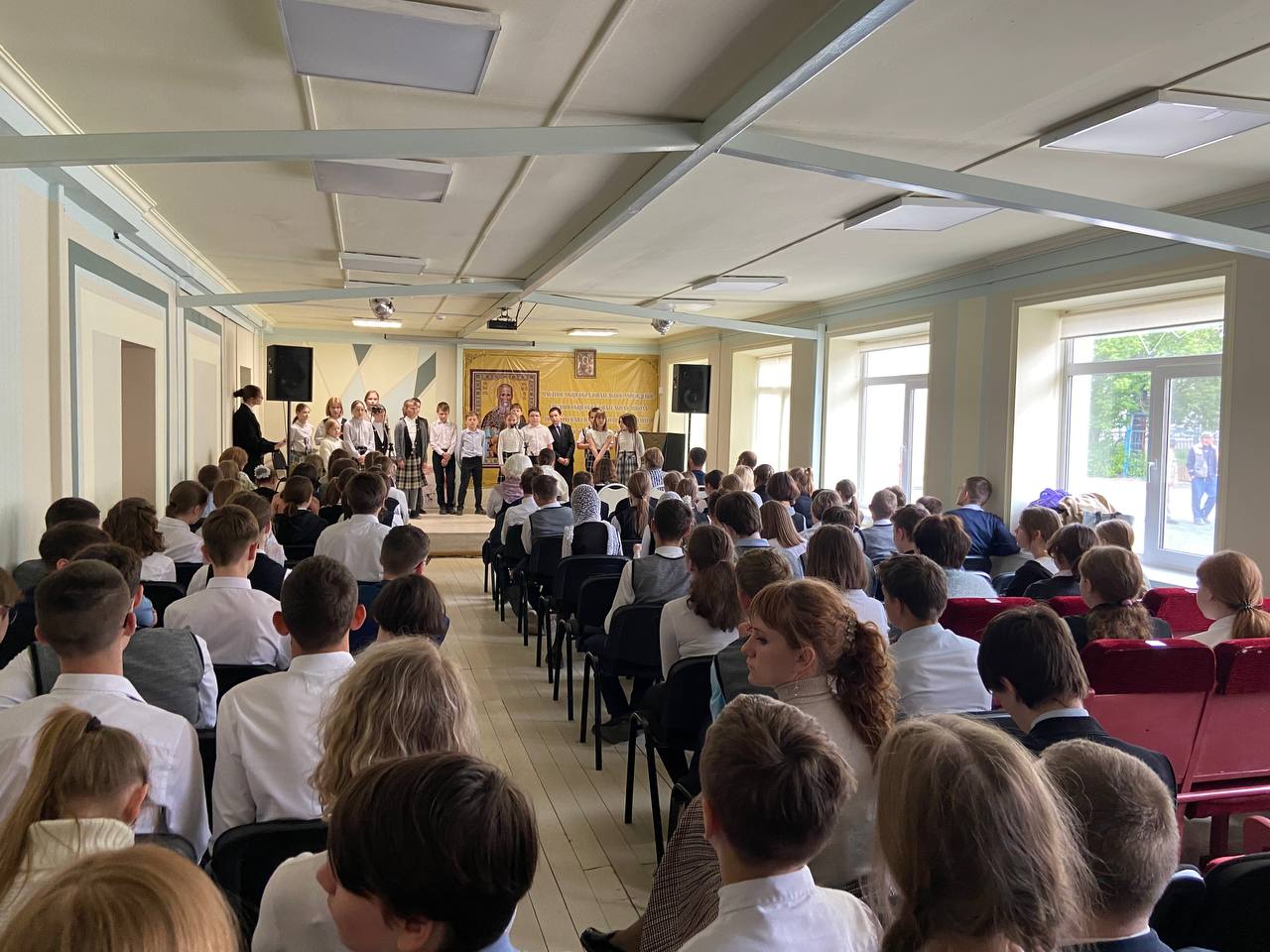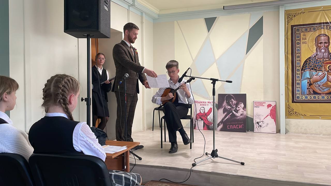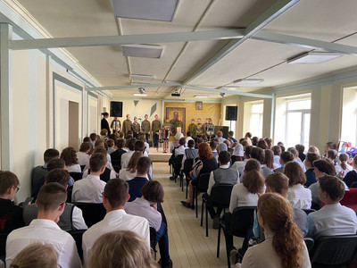 Гимназисты с батюшкой отслужили благодарственный молебен о победе в Великой Отечественной войне и спели вечную память всем погибшим на полях сражений, в лагерях и в тяжелых условиях в тылу.