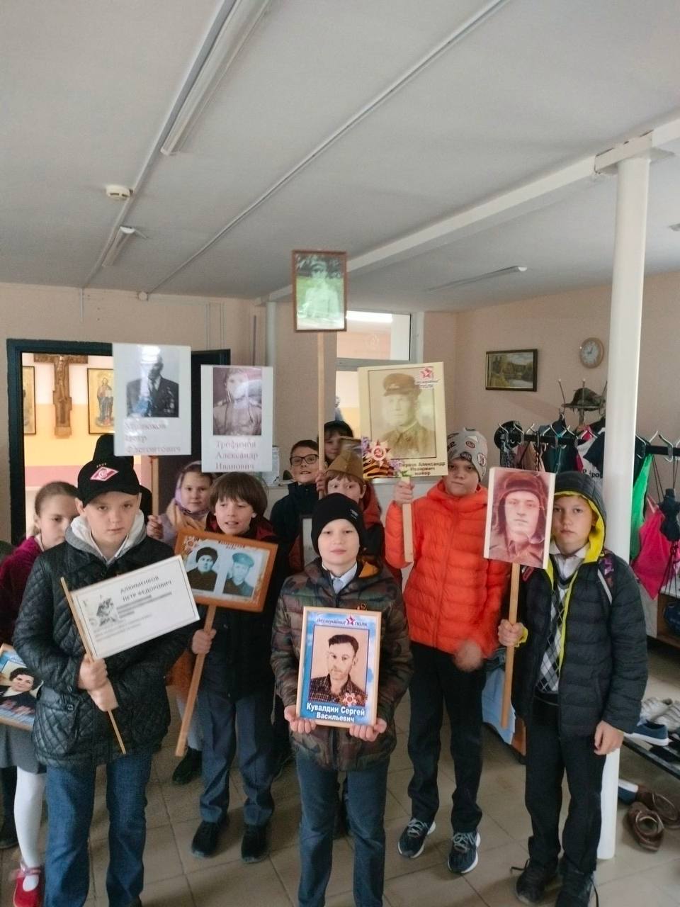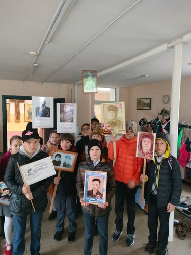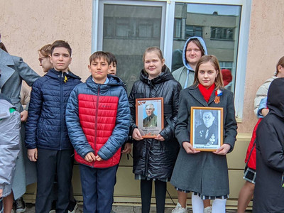 В конце мероприятия все вместе спели песню Давида Тухманова «День победы», а затем учащиеся с портретами своих воевавших предков прошли по улицам около гимназии.