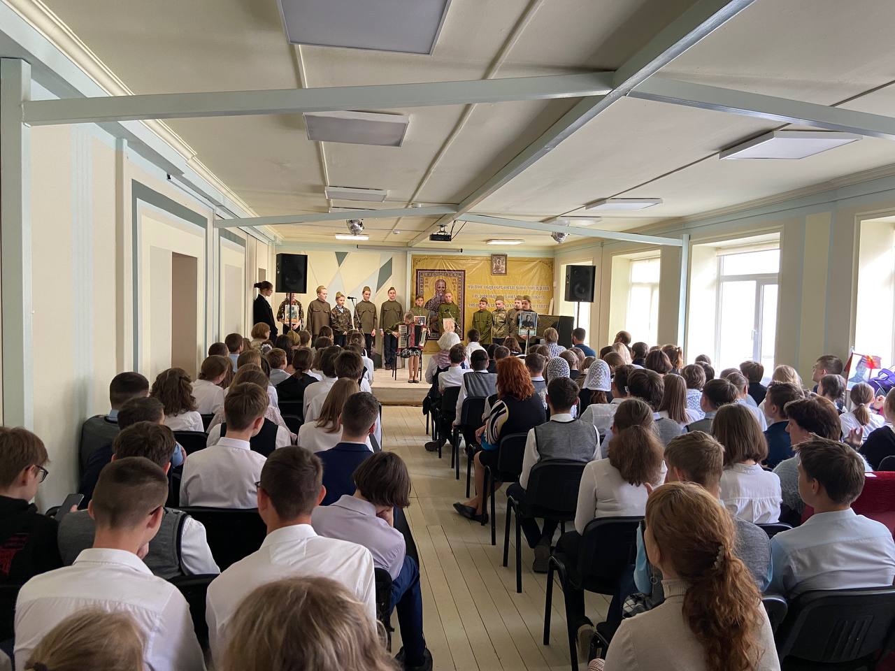 Также в гимназии прошёл праздничный концерт, посвящённый Дню Победы. Фронтовые песни, стихи военных лет и немного истории. Гимназисты исполнили различные номера, каждый из которых наполнен благодарностью и уважением к подвигу наших предков. Ребята старались прочувствовать строчки военных лет и с помощью эмоций передать свои переживания о тех горьких и страшных годах, которые мы должны помнить всегда.