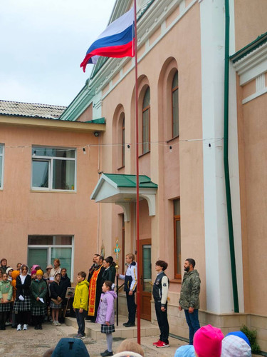 В дни празднования 78-ой годовщины Дня Победы в гимназии прошла торжественная церемония поднятия флага и исполнение гимна Российской Федерации.