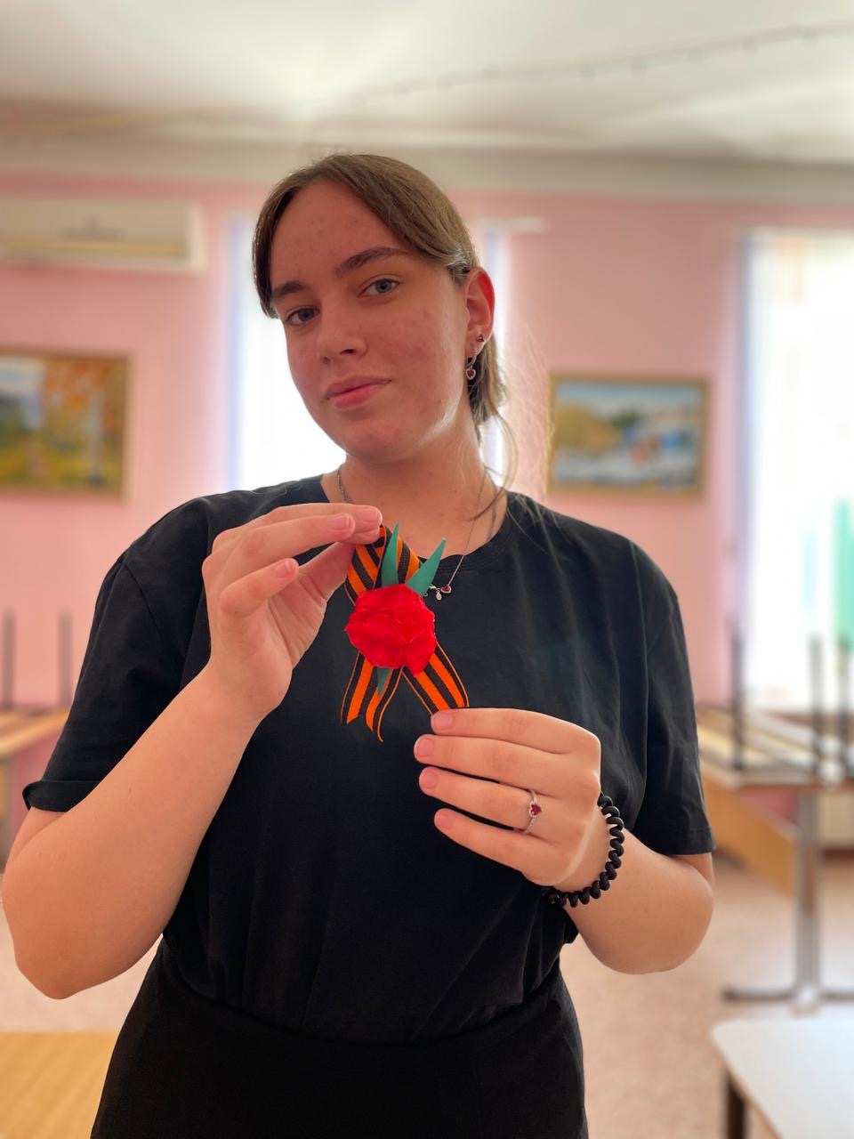 В канун годовщины Великой Победы, в день святого Георгия Победоносца в гимназии состоялся мастер-класс по изготовлению Георгиевских ленточек. Провела его ученица 9 б класса Аня Киселева. В дружественной атмосфере ребята смогли познакомиться с простыми приемами украшения символа Победы и изготовить ленточки для себя и своих близких.
