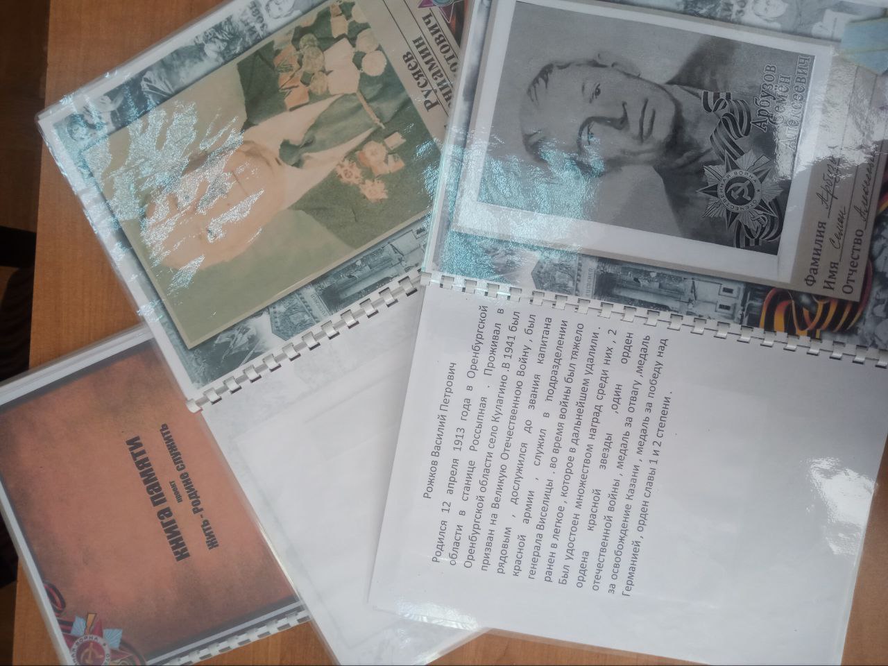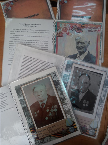 В рамках проекта "Жить - Родине служить" подростки - участники проекта создали книги памяти под общим названием "Служение Отечеству в моей семье". В них раскрываются семейных традиций, имена защитников Отечества дедушек и прадедушек, бабушек и прабабушек юных участников проекта, которые трудились во благо Родины и защите Отечества. В них представлены семейное древо, предметы быта, фотографии.