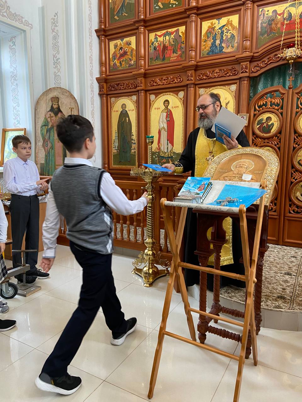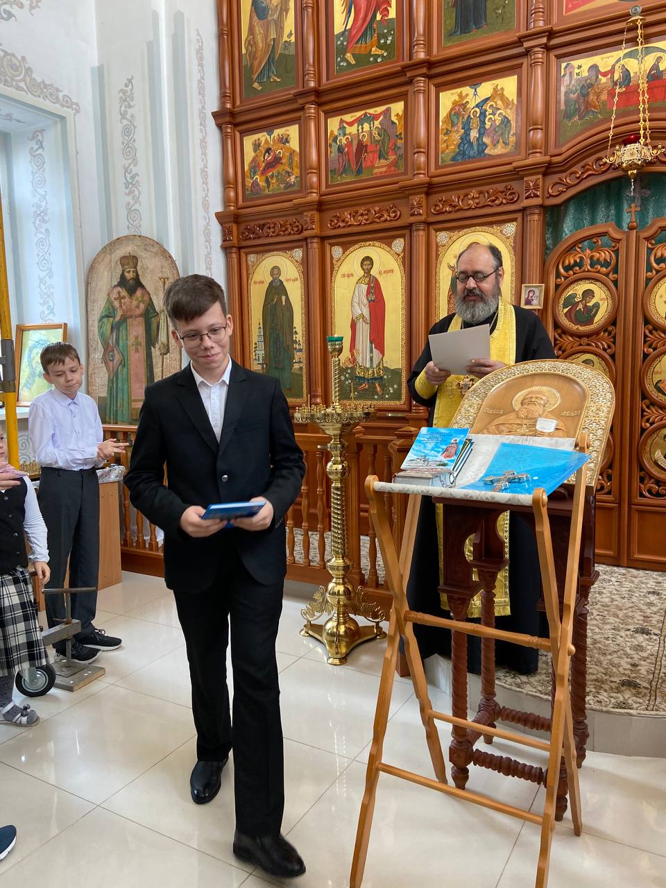 Все победители были награждены о. Георгием ценными подарками - книгами о вере и Отечестве, так как сам Сергей Тимофеевич был большим патриотом и посвятил свое творчество нашей Родине.
