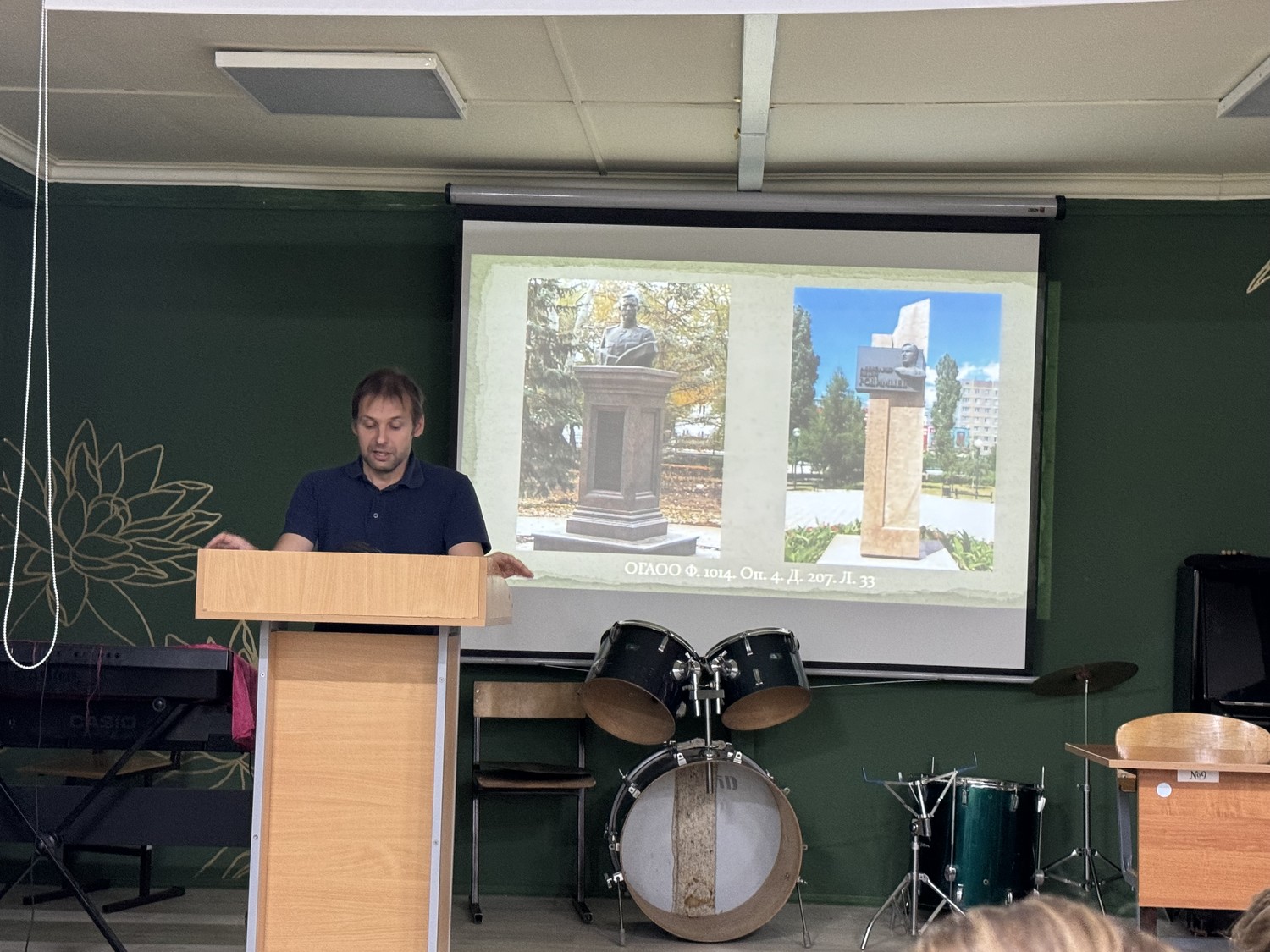 В рамках патриотического проекта-гранта «Жить Родине служить» в гимназии состоялась важная и значимая встреча с ведущим архивистом отдела использования и публикации документов объединеного государственного архива Оренбургской области Евгением Алексеевичем Поповым. Учеников ждал удивительный урок истории, который погрузил их в героическое прошлое нашей страны. Евгений Алексеевич провел лекцию, посвященную героям Советского Союза, в честь которых названы улицы в Оренбурге и Оренбургской области.
