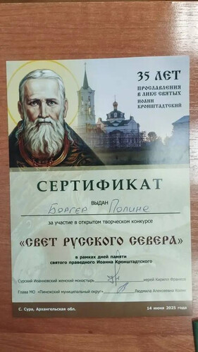 Так же в этот день чествовались участники и призёры открытого конкурса «Свет Русского Севера», который проводился в рамках дней памяти святого праведного Иоанна Кронштадтского.