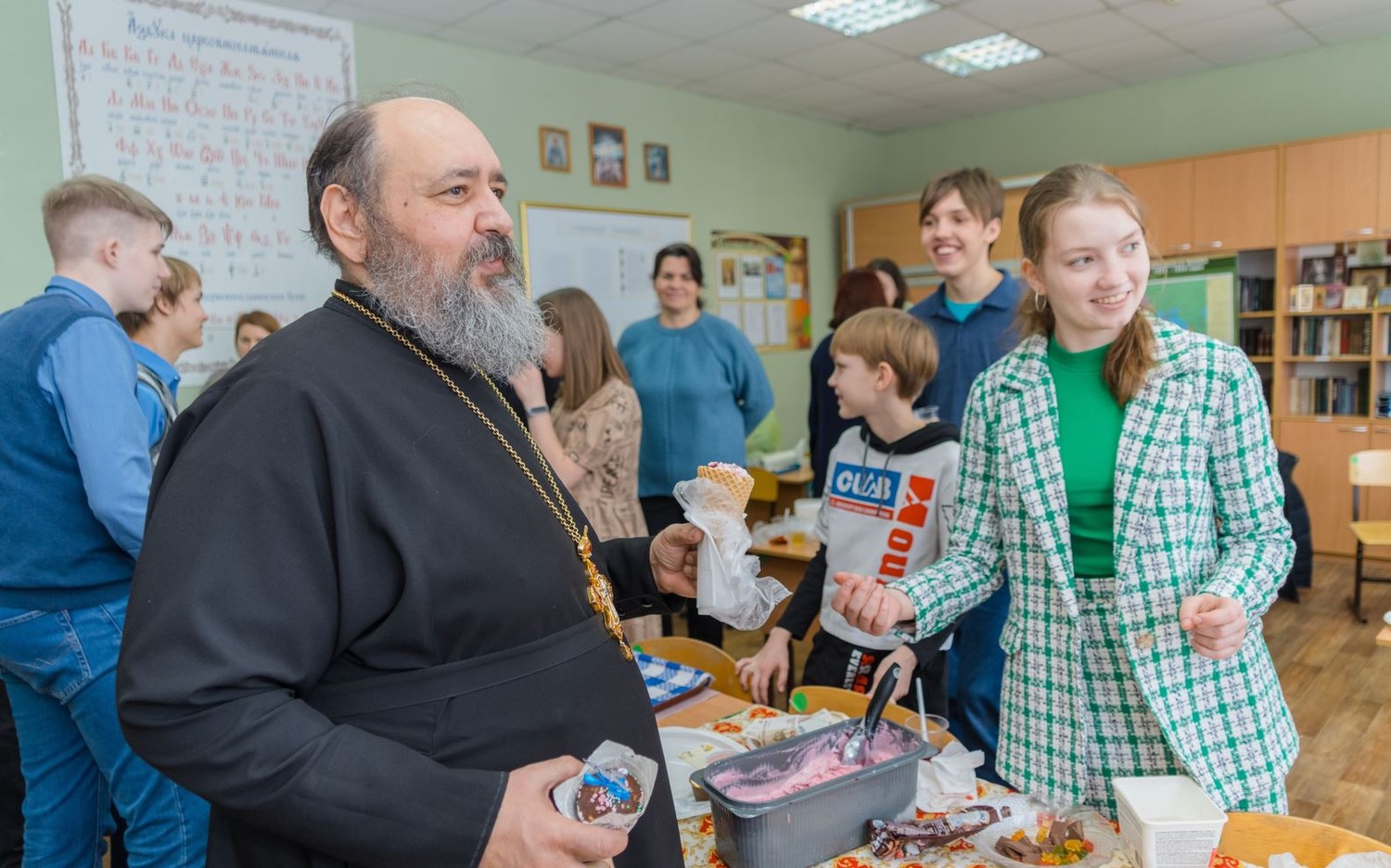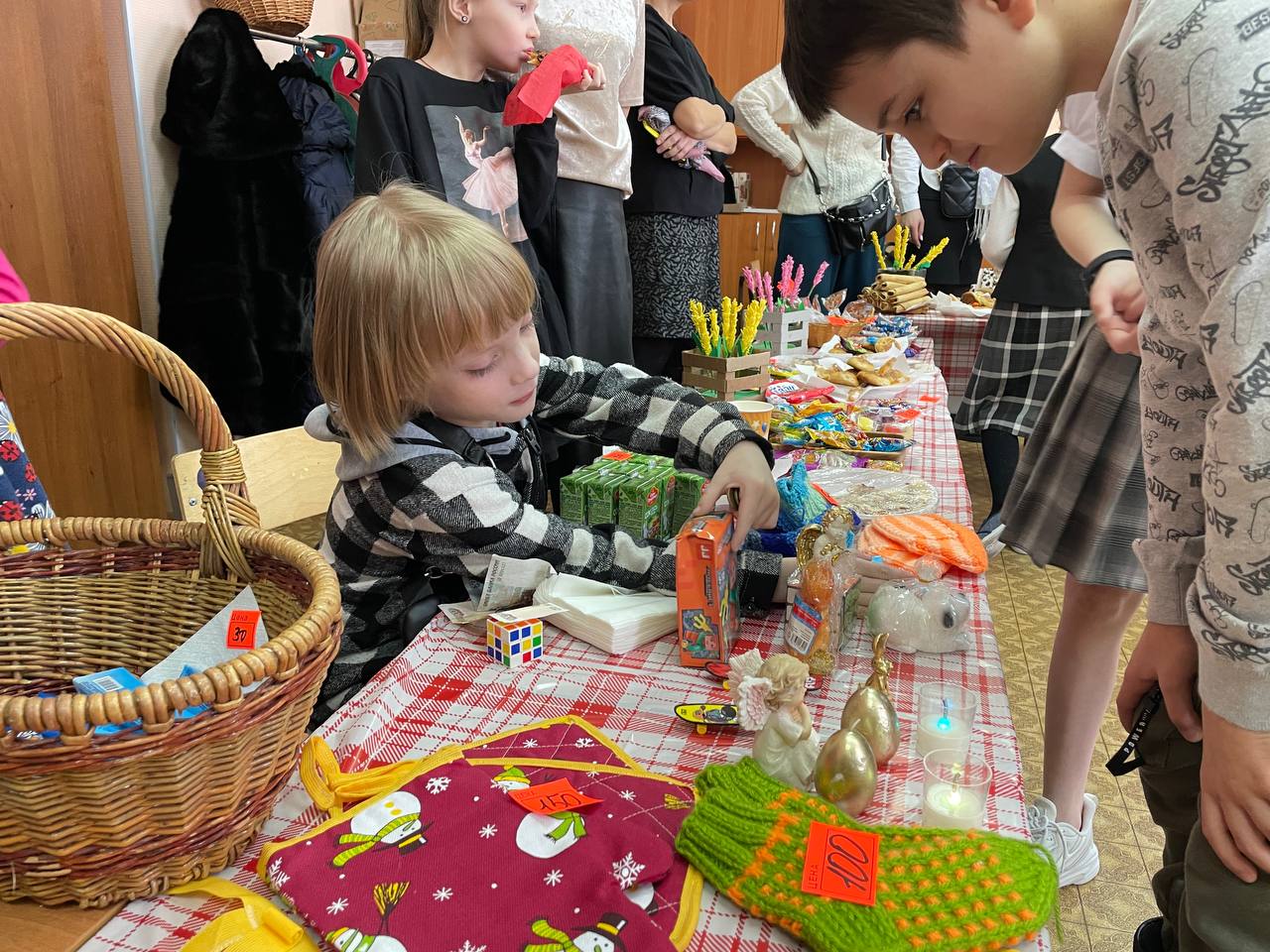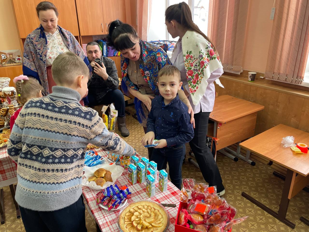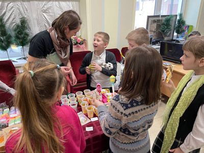 Сегодня из актового зала школы доносятся заводные русские народные мотивы и запах свежей домашней выпечки. Вместо прилавков – школьные парты, на которых вместо тетрадей сегодня разнообразие товаров.