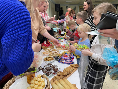 Ребята и их родители подготовили на продажу ватрушки, булочки, пирожные, леденцы, напитки, вязаные игрушки и, конечно же, главное блюдо Масленицы – блины.