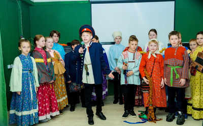 В актовом зале для всех гостей выступал народный ансамбль гимназии "Перегода". Артисты исполнили масленичные песни и танцы, создав атмосферу настоящего русского праздника. Зрители с удовольствием подпевали и аплодировали, наслаждаясь яркими выступлениями.