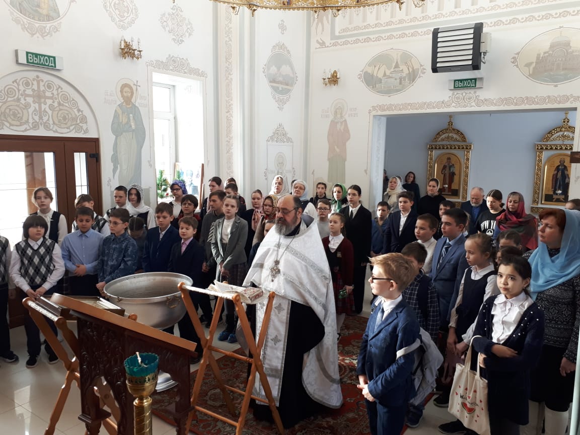 Нужно отметить, что из-за пандемии последние три года олимпиада проводилась в онлайн формате, и эта встреча на очном туре была действительно радостной, ведь ученики и педагоги из разных школ могли пообщаться друг с другом. Поэтому и начало мероприятия состоялось в храме. Директор православной гимназии протоиерей Георгий Горлов отслужил молебен, благословил на начало испытаний и подбодрил ребят напутственным словом.