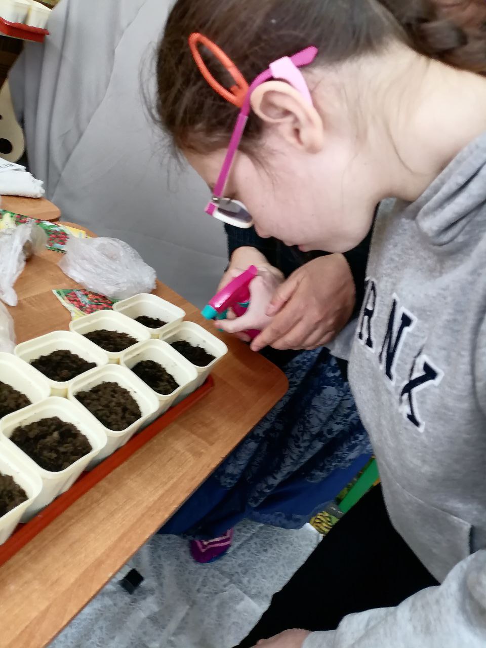 На последней неделе ребята знакомились с возможностями поддержания чистоты и красоты придомовых территорий. Посадили цветы. Специалисты рассказали как появляются растения, зачем они нужны, какие бывают растения. Ребята посади цветы. Каждый день, приходя на занятия, они с интересом поливали посаженное. Многие это делали впервые, обретали новые умения. С нетерпением ожидаем рост появившихся росточков.