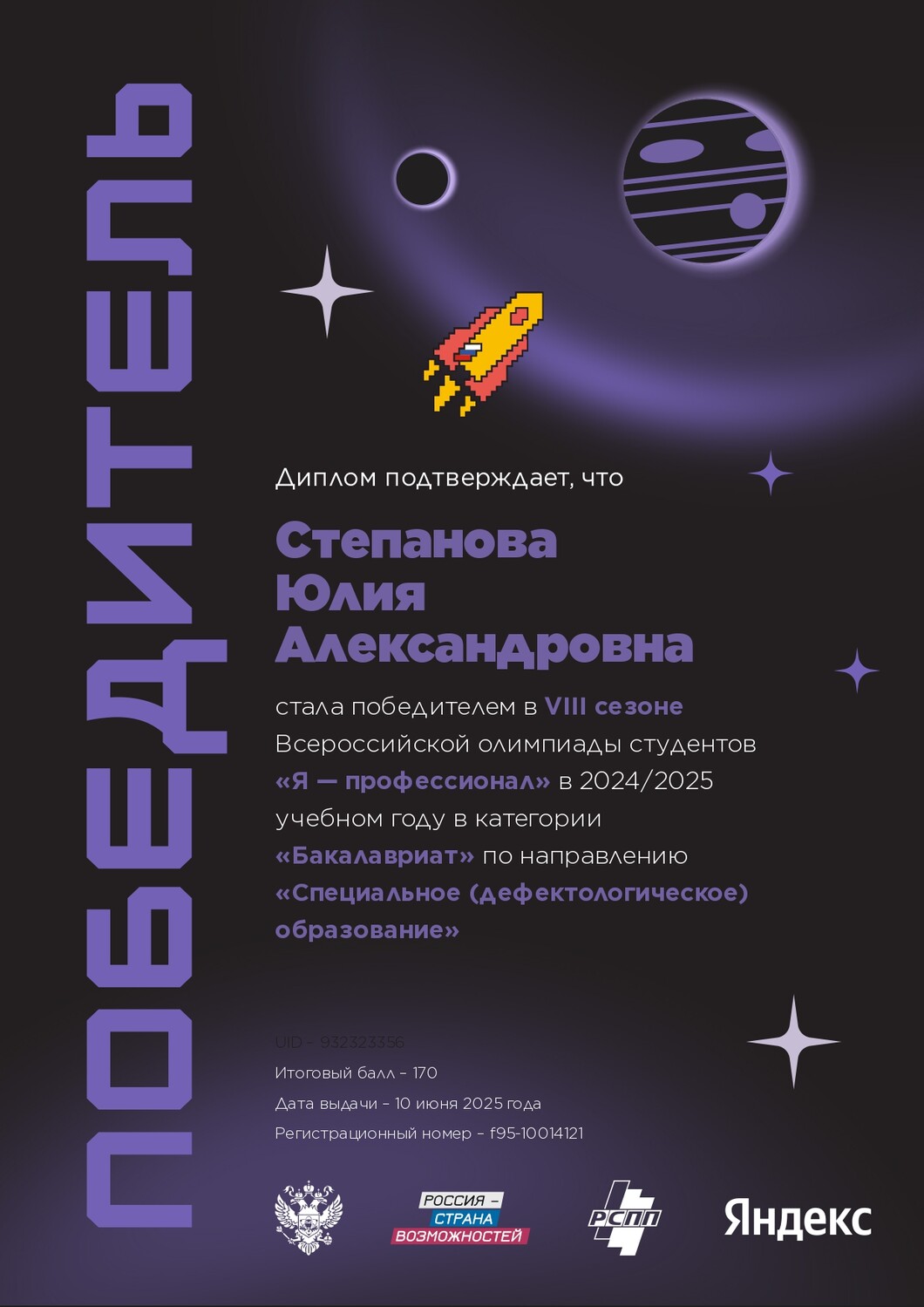 Поздравляем нашего волонтера центра "Преображение" Юлию Степанову с победой в VII сезоне Всероссийской олимпиады студентов "Я - профессионал" Президентской платформы "Россия - страна возможностей"! Молодец! Так держать!