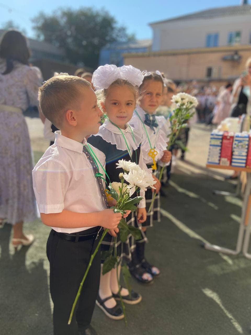 Торжественная линейка началась с молебна, который отслужил директор гимназии протоиерей Георгий Горлов, после чего старшие ученики поприветствовали и поздравили всех, и торжественно прозвенел первый в этом году звонок. Но на этом праздник не закончился, детей ждали сюрпризы - шоу мыльных пузырей, сладкая вата и вкусное мороженое!