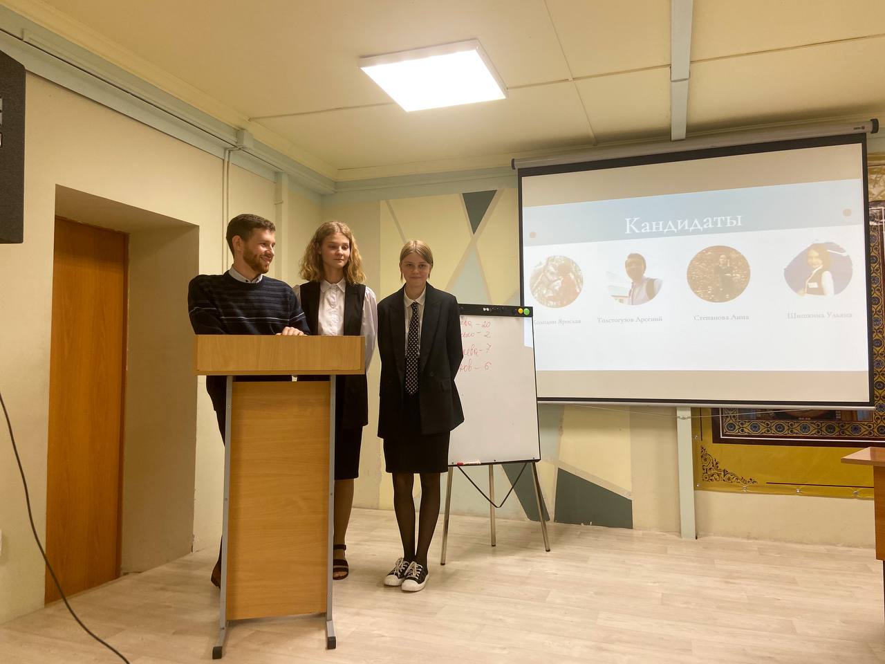 Было выдвинуто четыре кандидата: Колодин Ярослав, Степанова Анна, Толстогузов Арсений и Шишкина Ульяна. Каждый представил свою программу и рассказал о целях, которые хотел бы реализовать после выборов. С большим перевесом победу одержала ученица 8 класса Шишкина Ульяна. Но это не означает, что в гимназии будет идти работа по реализации только её программы.