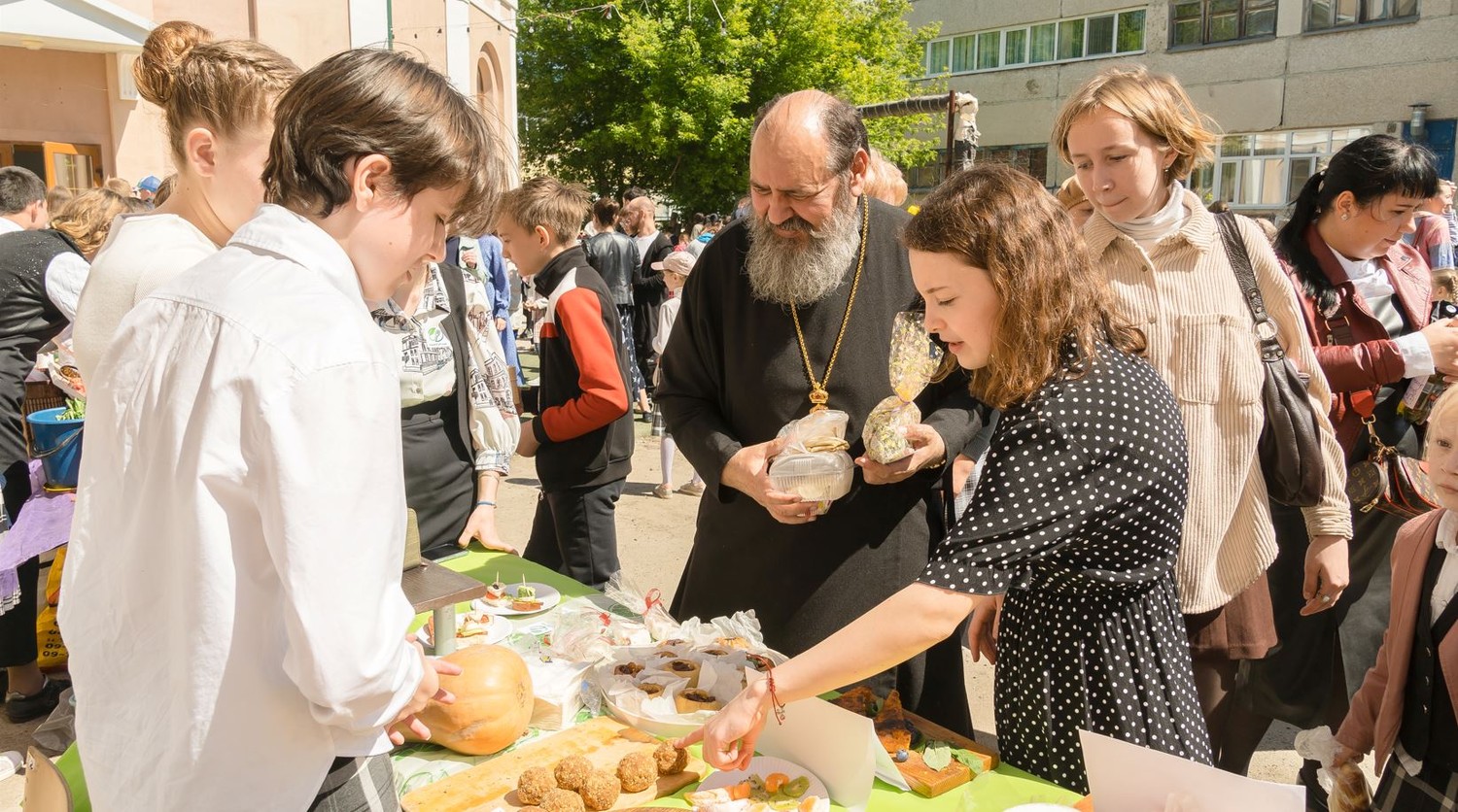 В этом году праздник в честь окончания учебного года прошел 28 мая. После благодарственного молебна прошла традиционная благотворительная ярмарка! В назначенный день парты превратились в нарядные витрины. «Прилавки» ломились от домашних горячих пирожков, разнообразных сладостей, напитков, подделок, игрушек…