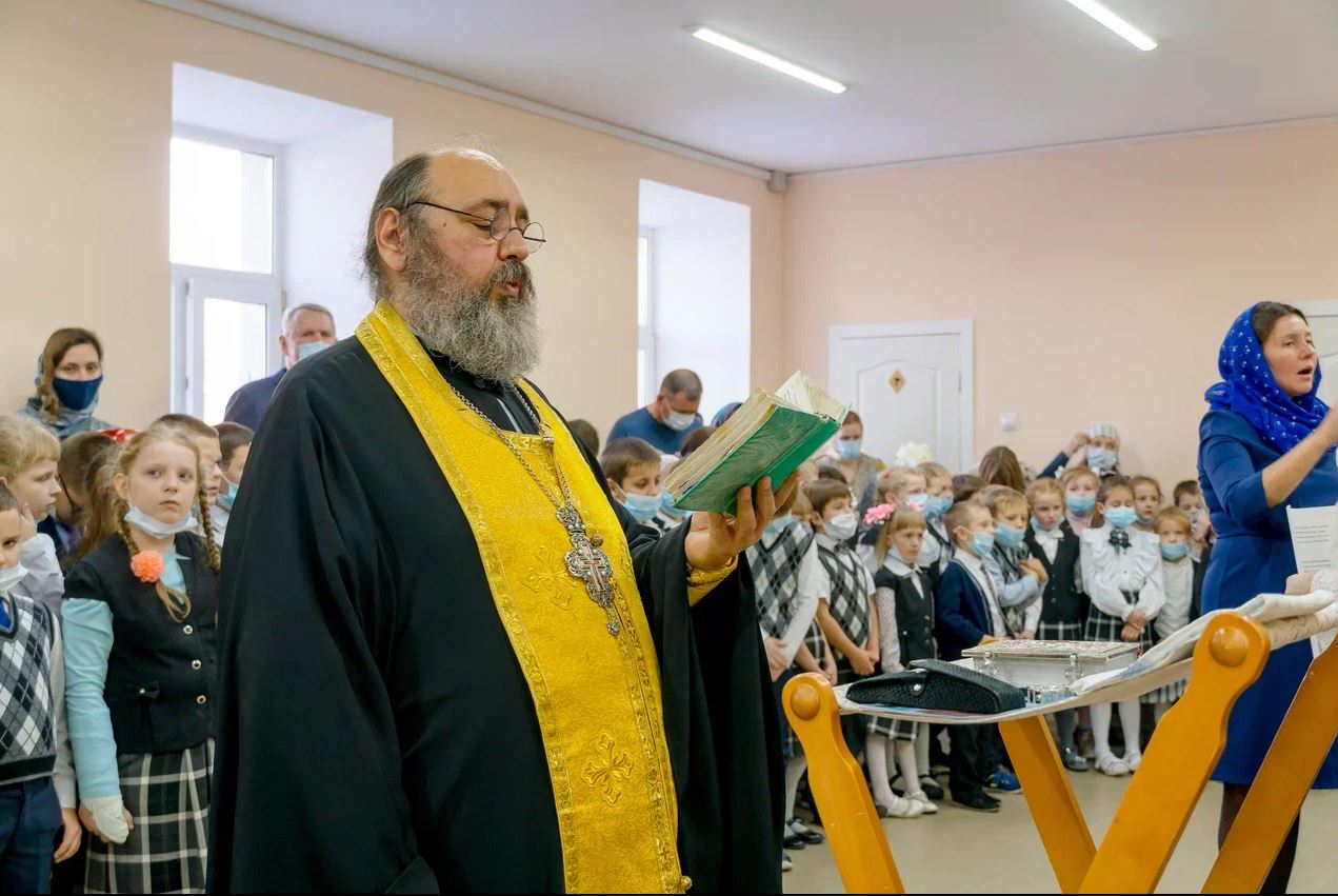 20 лет назад гимназия открыла двери маленького уютного здания, нашего первого корпуса на улице Рыбаковской, и вот, спустя много лет, наш батюшка освятил новый, красивый и просторный корпус для учеников начальной школы!