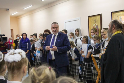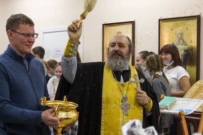 Казалось, даже стены светились от радости и счастья. В новом корпусе учатся самые маленькие и самые любознательные гимназисты: первоклассники, второклассники и третьеклассники! В завершение молебна о. Георгий и о. Андрей окропили молящихся и территорию нового корпуса святой водой. Юные ученики от всего сердца отблагодарили благотворителей и подарили им трогательные подарки! И особенно тёплые слова произнесли наши попечители, которые помогали все эти годы гимназии расти, процветать и преодолевать все трудности!