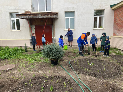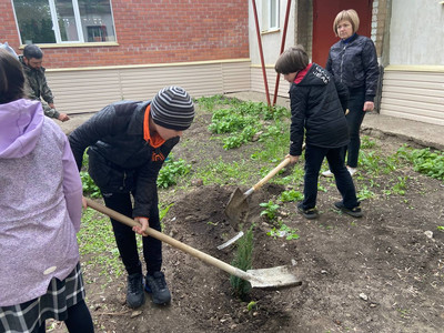 Посадка деревьев в гимназии в день Детства - проект «Озеленение»