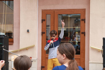 И пусть в начале накрапывал дождь - никто не испугался и не убежал - все встретили его с большой радостью и счастливыми улыбками!