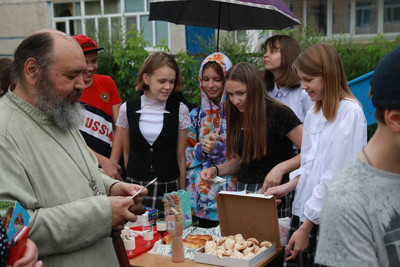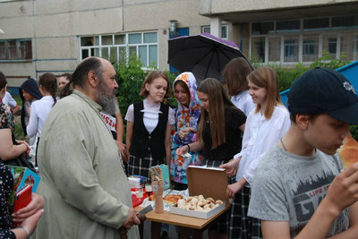 В честь окончания учебного года, в нашем храме прошёл благодарственный молебен, а после молебна, во дворе гимназии развернулась благотворительная ярмарка и концерт.