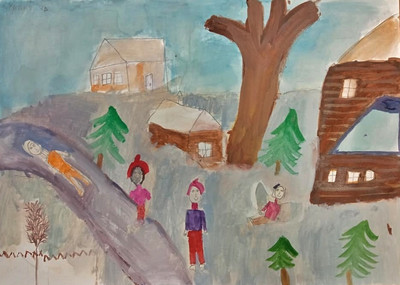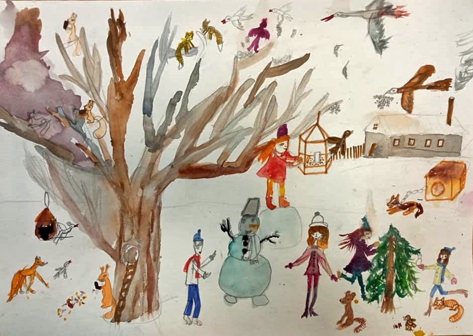 Ребята очень старались донести до нас удивительную красоту зимы – на белом снегу статичные дома и деревья, и движущиеся фигурки людей. Посмотрите, как Петрова Оля, Полина Кувалдина, Оленька Федотова и Настя Ломакина стараются уловить движения человека во время зимних забав. А Илигенова Саша увидела, как устроены кормушки для птиц на дереве, и счастливые птицы торопятся прилететь и схватить зернышки, насыпанные в кормушке. Виктория Бакирова любуется статичностью зимнего вечернего заката в момент снегопада, а Сашенька Демакина увидела красоту зимнего леса на рассвете, птицы и лошадка встрепенулись, проснувшись, и спешат по своим делам.