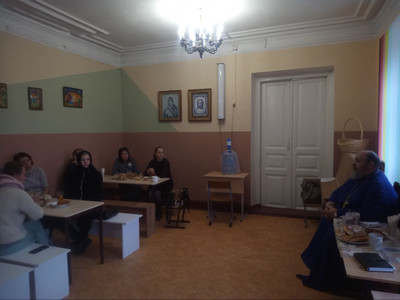 В центре дневного пребывания детей с инвалидностью "Преображение" прошла очередная встреча с родителями. За чашкой чая состоялся разговор о насущных вопросах воспитания детей с ограниченными возможностями здоровья. Отец Георгий Горлов, директор православной гимназии, коснулся вопросов возможностей расширения средств социализации ребят.