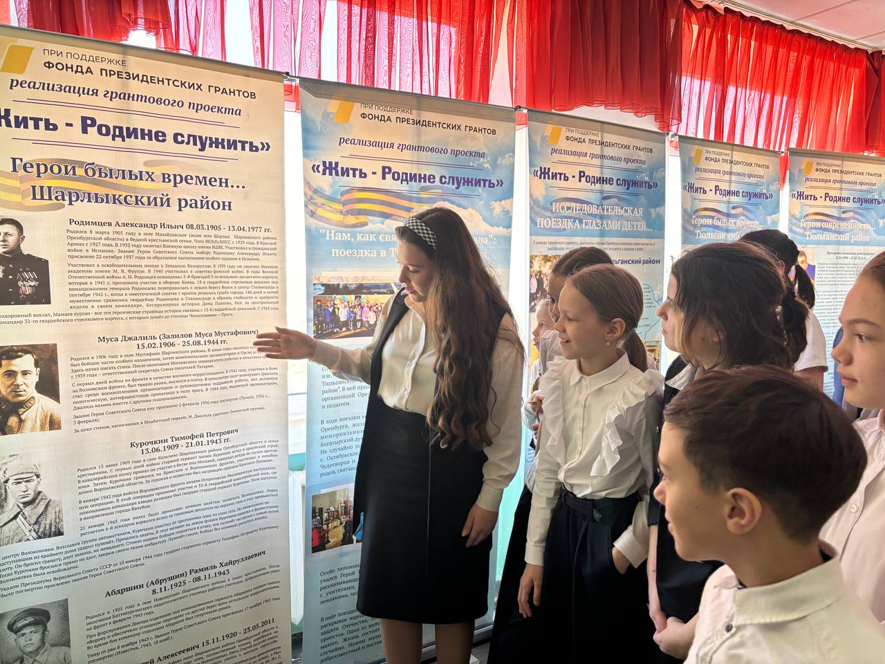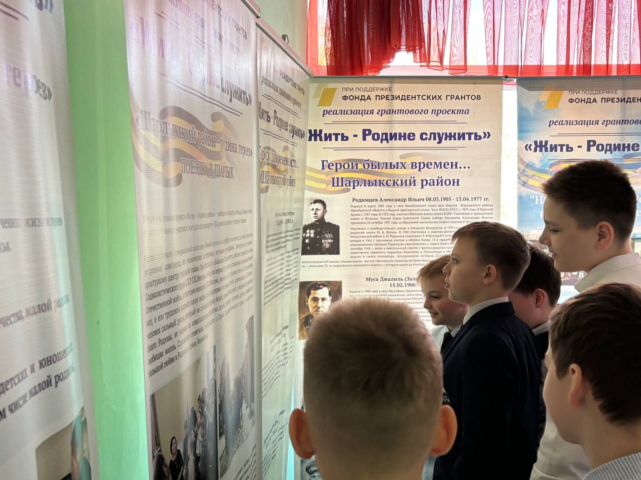Выставка "Оренбуржье – Родина Героев. Духовные истоки патриотизма" экспонировалась в лицее №1 в течение нескольких дней. В эти дни свыше 1000 учащихся лицея и более 60 педагогов смогли ознакомиться с экспозицией, разделенной на три тематических блока: "Духовные истоки патриотизма. Оренбург", "Шарлыкский район – родина героев" и "Нам, как святыня, Родина дана. Тюльганский район".