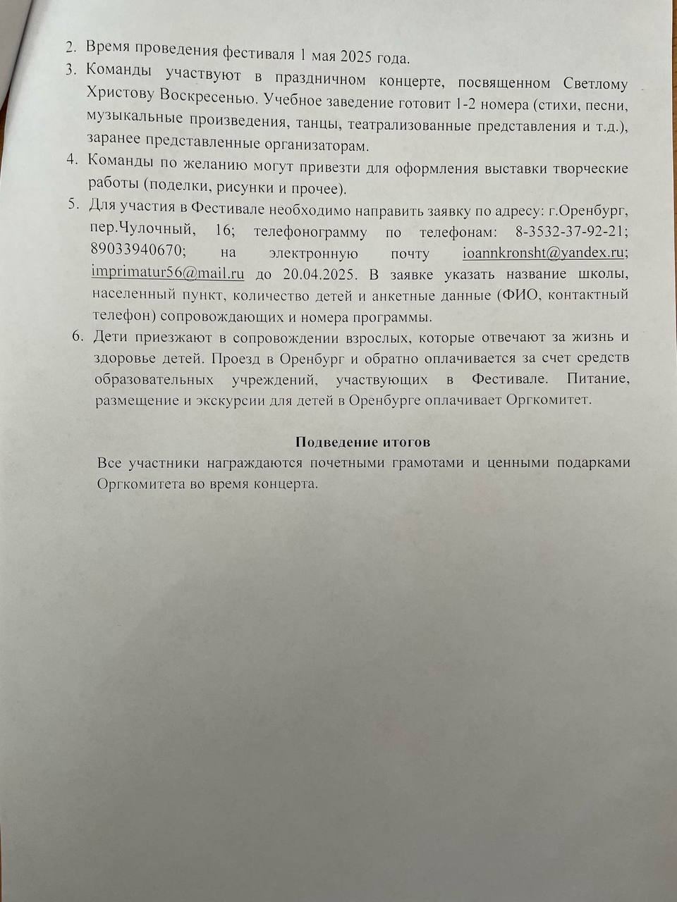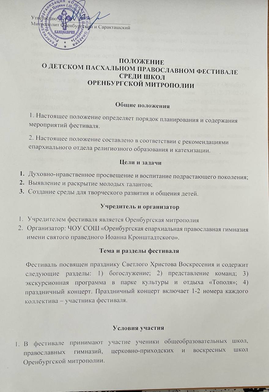 Фестиваль организован Оренбургской митрополией при поддержке Оренбургской епархиальной православной гимназии имени святого праведного Иоанна Кронштадтского.