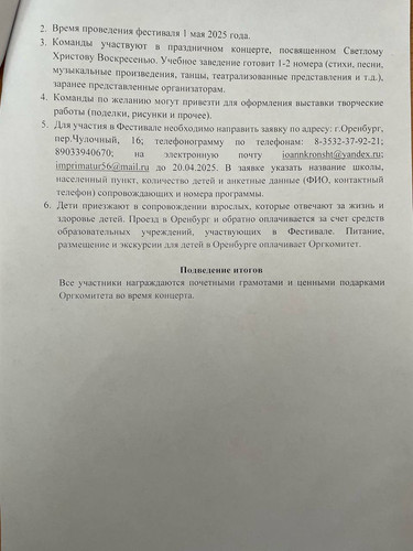Заявки на участие принимаются до 20 апреля 2025 года на электронные адреса: