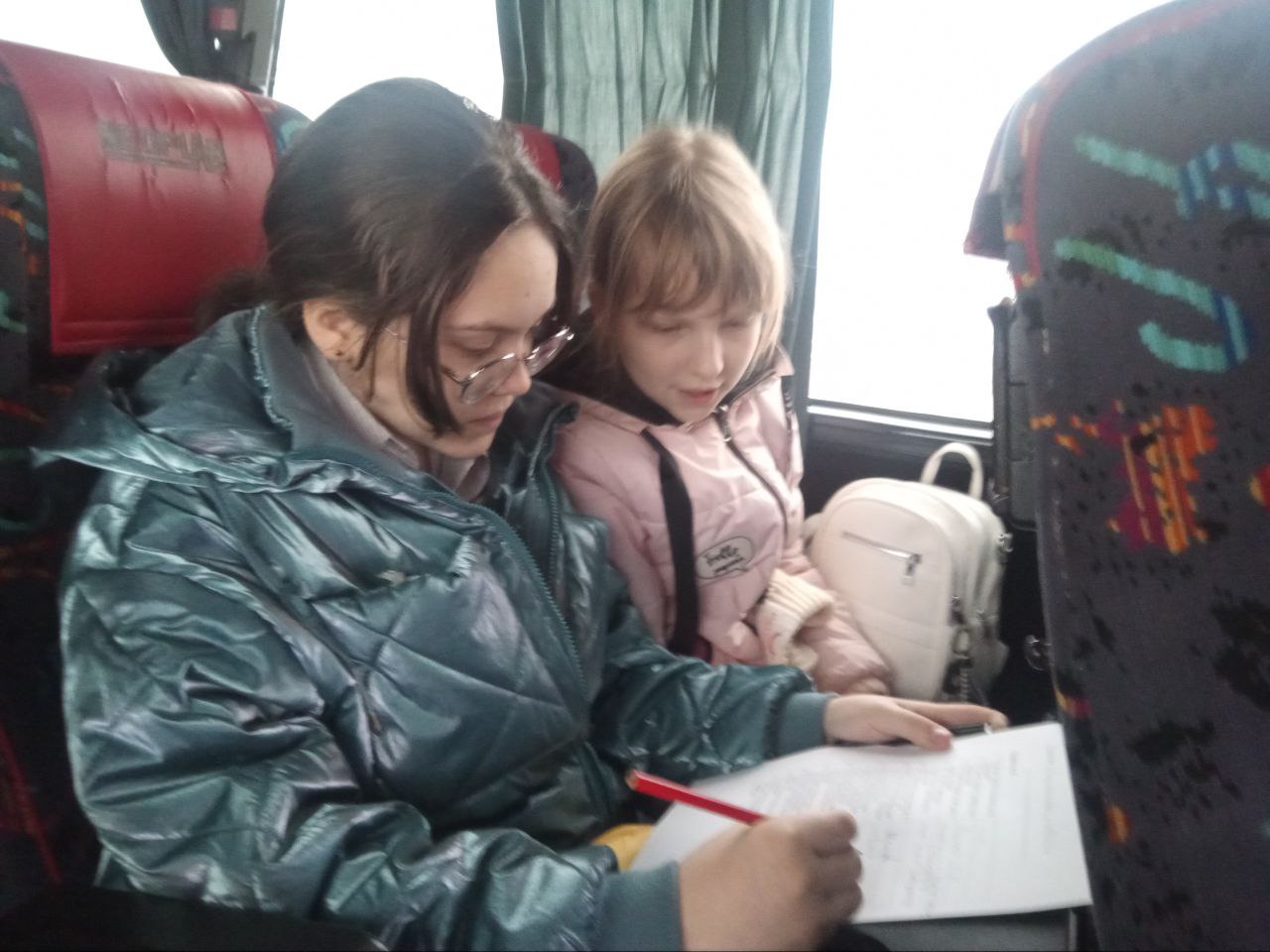 Также была организована работа в автобусе. В ходе поездки экскурсовод знакомил ребят с интересными страницами жизни земляков, сражавшихся в годы испытаний для нашей страны с врагами, трудившихся в тылу. Среди них и казаки, и Герои Советского Союза, и Герои России, и простые граждане нашего государства, делавших всё для победы. Юные путешественники узнали о детских, юношеских страницах жизни, подвигах дважды Героя Советского Союза А. И. Родимцева, Героев Советского Союза П.А.Орлова, С.П.Лабужского, Т.П.Курочкина. Обучающиеся обращались и к духовным истокам патриотизма. Они отметили, что основу любви к Родине закладывает семья. Любовь слагается в сердце человека и в ходе молитвы в храме.