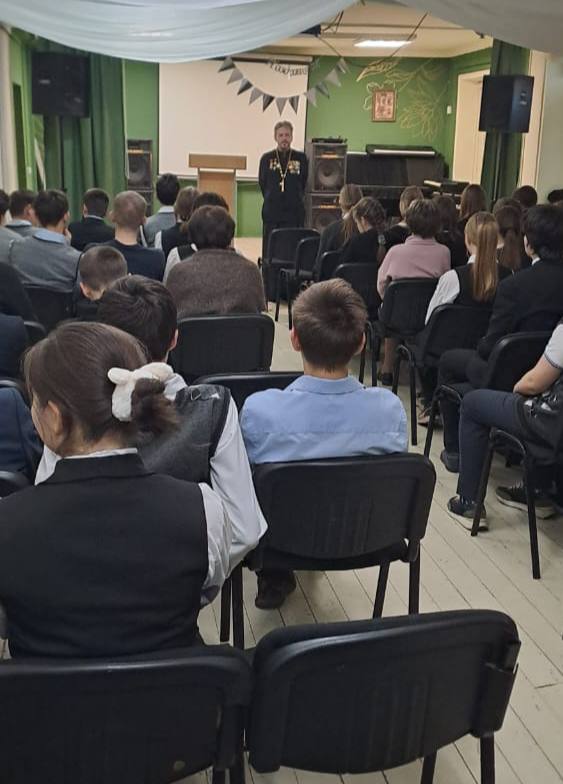 В рамках гранта «Жить - Родине служить!» прошла творческая встреча «Оренбуржье - Родина героев. Духовные истоки патриотизма» с участником боевых действий. Юные участники проекта встретились с протоиереем Андреем Страйковым, военным священником и участником специальной военной операции (СВО). Отец Андрей поделился своим опытом поездок в Сирию и зону специальной военной операции, где он неоднократно сопровождал военных, оказывая духовную и моральную поддержку.