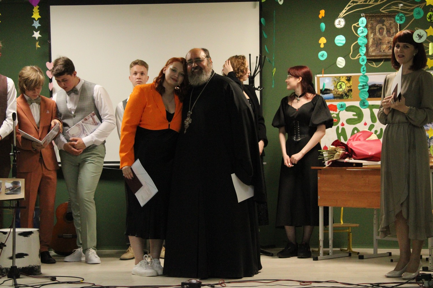 учителя собрались вместе, чтобы отметить это значимое событие.