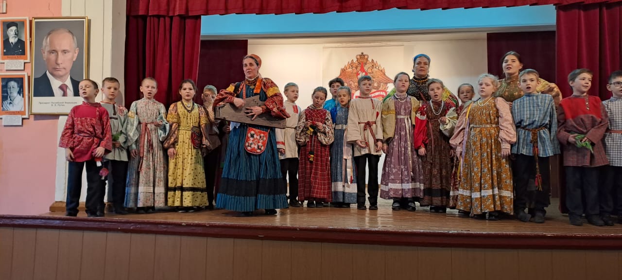 Руководитель ансамбля «Перегода» Ольга Николаевна Зверева рассказала об истории русского народного творчества, посвященного воинским подвигам наших соотечественников, начиная с 12 века и до сегодняшних дней.