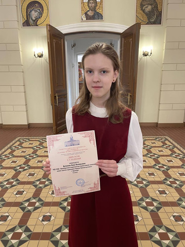 Ученица 9 класса православной гимназии города Оренбурга Антонова Анна стала победителем регионального тура Общероссийской олимпиады по основам православной культуры и была награждена дипломом I степени и памятными подарками. Дипломы победителям вручали ректор института протоиерей Владимир Воробьев и его заместитель иерей Андрей Постернак.