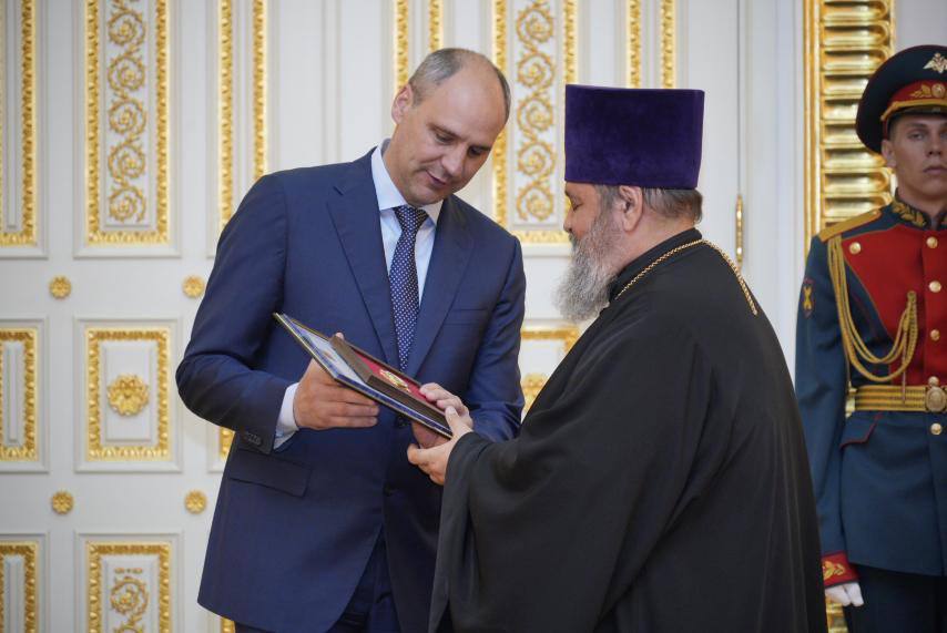 Награду получал ректор гимназии протоиерей Георгий Горлов.